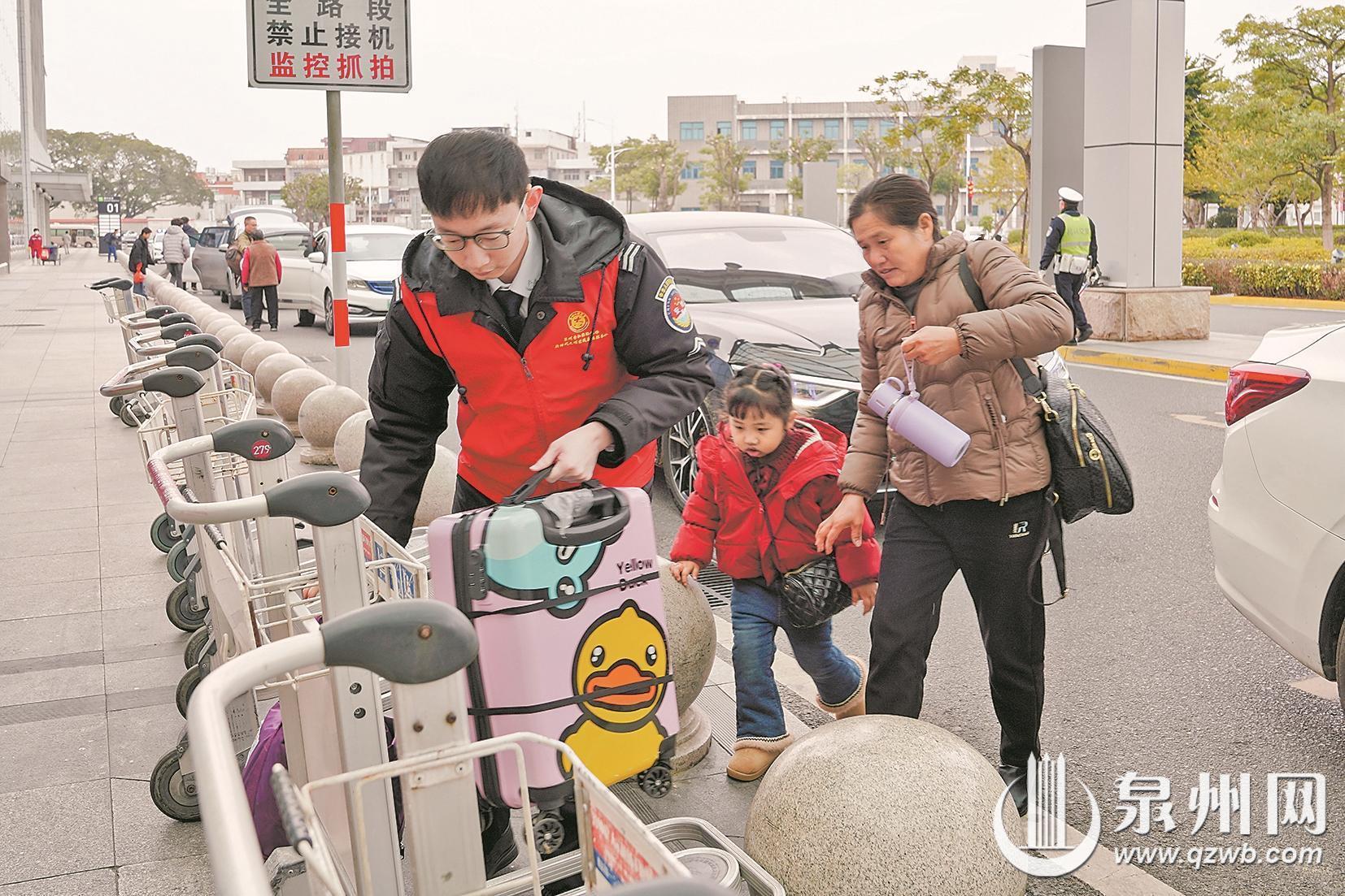 像这样的暖心画面在机场还有很多……泉州晋江国际机场是我省重要交通枢纽之一,2025年该机场累计完成旅客吞吐量超885万人次、航班起降近6.3万架次。进入2026年春运以来,航空客流量持续上升。为迎接八方旅客,作为全国、全省“岗位学雷锋标兵集体”,泉州晋江国际机场始终将雷锋精神融入服务血脉,坚守“人民航空为人民”的初心使命。春运期间,志愿者们定点值守于候机楼入口、旅客服务中心、值机柜台、国内出发及到达区域等客流密集点,提供路线指引、乘机咨询、反诈宣传、重点旅客帮扶等全流程主动服务,用耐心回应每一个疑问,用细心解决每一处难题,以实打实的行动守护旅客平安舒心出行,持续擦亮“泉心为您晋情飞”服务品牌的温暖底色。