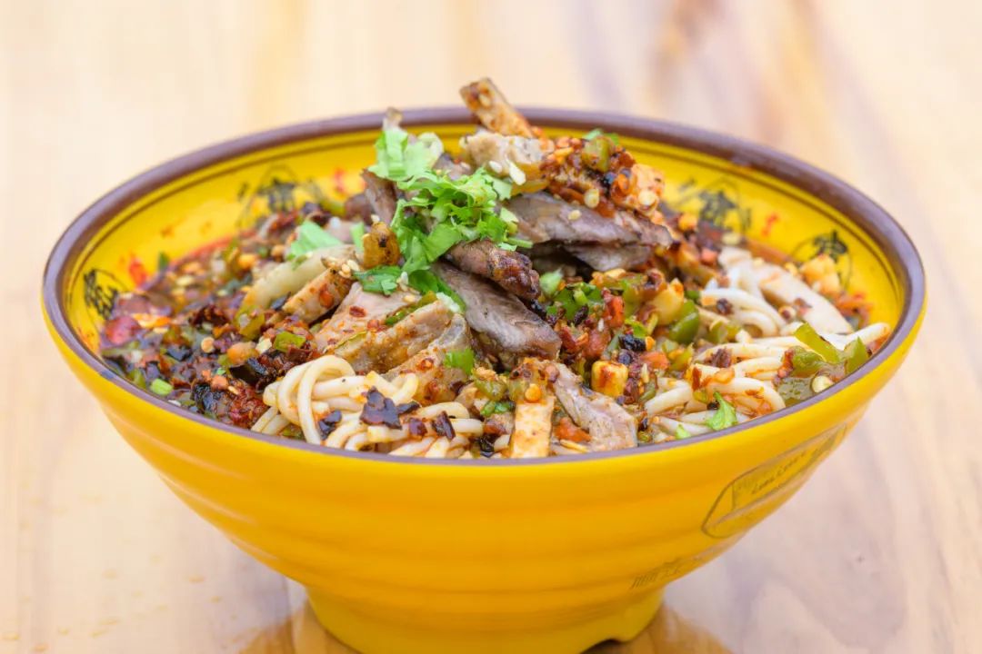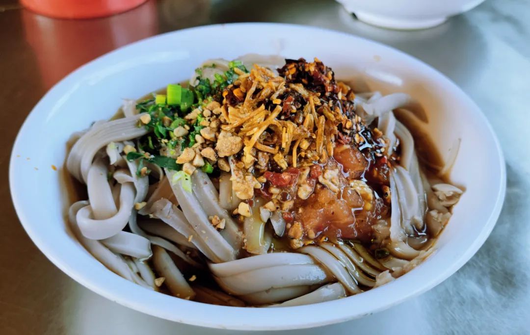 以本地籼米为原料,经泡、蒸、压、切多道工序制成,软糯筋道不粘牙,汤汁鲜醇回甘,搭配鲜肉、牛肉、杂酱等丰富浇头,是腾冲人的早餐首选,也是游客必尝的经典小吃。