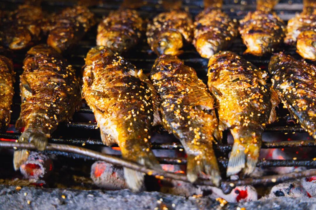 新鲜捕捞的鲫鱼,经过精细处理后,内填当地独有的植物香料,再以炭火精心烤制,外皮酥脆而内里鲜嫩,鱼香与植物清香相互交融令人回味无穷。