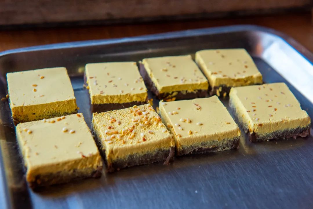 松花糕是腾冲一种较为多见的甜品,以松花粉、红豆制成,上层金黄,下层酱紫,铺展在绿色的芭蕉叶上,色彩分明,看上去漂亮又美味。松花糕闻着有淡淡的松木芬芳,细腻易化的松花粉入口时带着丝丝清凉的微苦,而红豆沙则夯实绵密,不粘牙、不糊口。