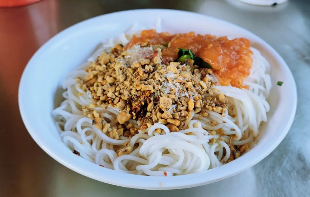 卷粉吃起来干香,乳白色的卷粉柔软、爽滑而有劲道,酱香麻辣浓郁,如果加上烧肉,清香的黄瓜丝夹杂着烧肉的油渣酥脆,一口下去全是满足。