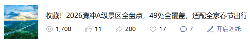2026 年的春节已经落幕,但腾冲的春天才刚刚开始。这里有火山热海的永恒温暖,有和顺古镇的千年书香,有高黎贡山的满目苍翠,更有淳朴热情的腾冲人民,我们诚邀八方宾客,四季赴约,共赏极边第一城的万千风华!