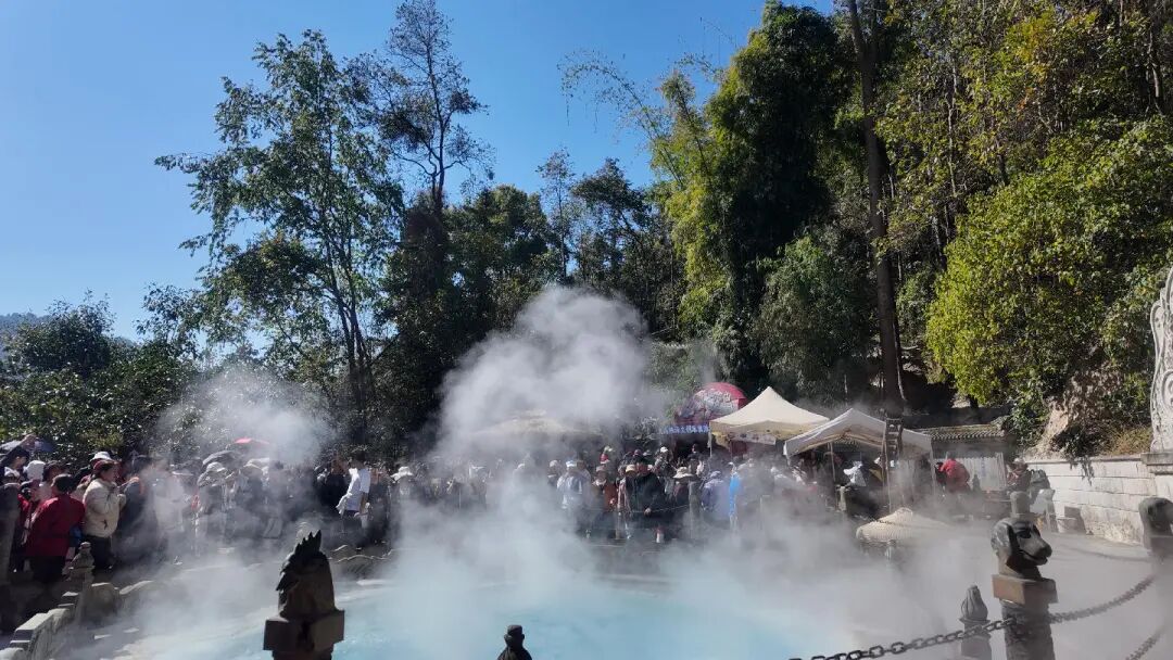 火山热海:暖泉祈福的康养之约。以 “马上有福・泉暖山海” 为主题,火山热海景区成为游客冬日里的温暖港湾。游客中心的年味市集里,非遗手作、特色小吃琳琅满目,徐霞客 NPC 身着古装,讲述着腾冲的地质传说与科考故事。大滚锅水舞秀光影交错,火山之巅的祈运仪式让人们在地热奇观中寄托美好期许。泡一池温暖的温泉,赴一场养生的年俗,成为这个春节最惬意的打开方式。