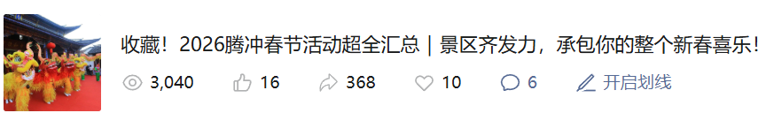 官方指引,服务到位。腾冲文旅精心整理并发布 100 家春节不打烊美食餐厅清单、春节活动汇总、景区游玩攻略、优质住宿推荐、特色美食推荐、文旅伴手礼汇总等权威指引信息,通过官方渠道精准推送,为游客提供 “吃住行游购娱” 全流程参考,让出行更清晰、游玩更安心、体验更舒心。