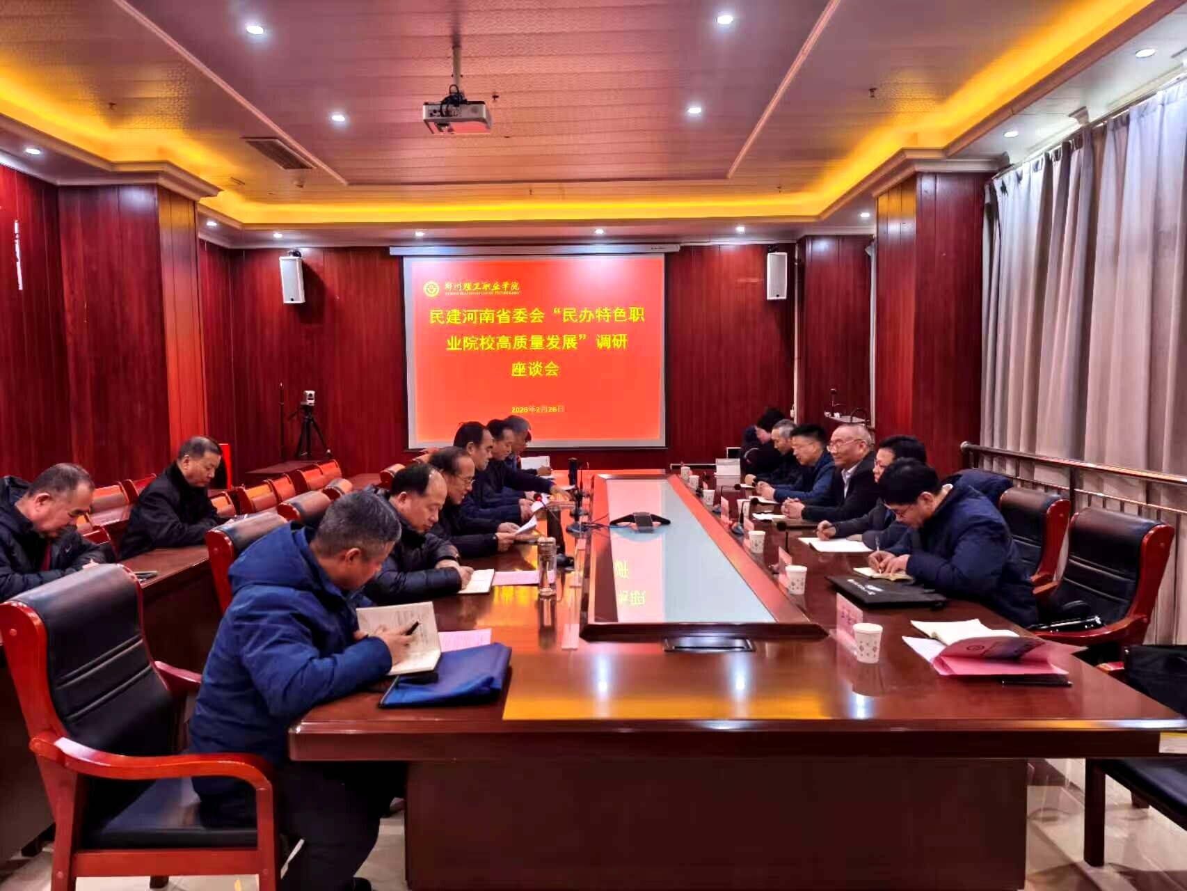 为系统把握我省民办特色职业院校发展建设情况,为民办高校高质量发展把脉定向、建言献策,2月26日下午,民建河南省委会主委梁留科等一行7人赴郑州理工职业学院开展专题调研,民建河南省委会科教委员会执行主任、河南大学计算机与信息工程学院执行院长韩道军,民建河南省委会理论委员会主任、河南工程学院经济贸易学院院长张建华,民建河南省委会科教委员会秘书长、郑州大学计算机与人工智能学院副院长、国家超级计算郑州中心副主任郭恒亮、河南大学计算机与信息工程学院副教授朱小柯,民建河南省委会办公室副主任王圣迪,民建河南省委会参政议政调研处三级调研员徐锐等专家参与调研。郑州理工职业学院理事长马振红,校长张久铭,党委副书记王凌彬,副校长赵金安,纪委书记、教务处长李庆标,校长助理袁桂娥等校领导及相关部门负责人陪同调研并参加座谈。