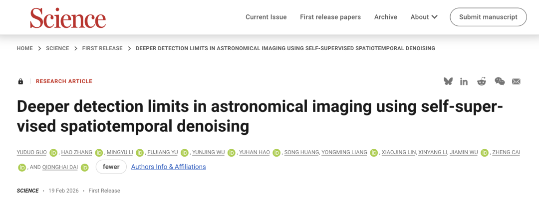 以《自监督时空降噪提升天文成像探测极限》