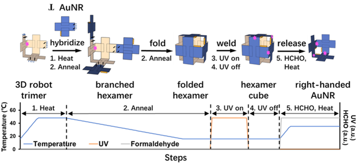 提出了生物高分子动态三维折叠组装新机制,开发出三维DNA工业纳米机器人可响应外界条件并操控制造出具有“手性”的纳米材料。