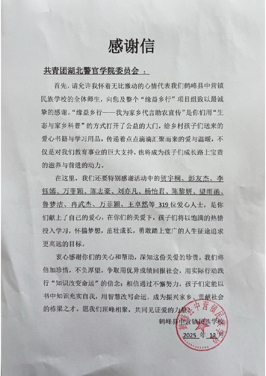 为给予留守儿童真切关怀与正向激励,助力他们健康快乐成长,11 月 13 日至 15 日,湖北警官学院志愿工作部联合 “希望树” 项目组共同发起 “书香暖童心・知识照未来” 公益主题活动,近 400 名学子踊跃参与其中。此次活动意义深远,既为留守儿童点亮了求知之路,让他们真切体悟到社会各界的温暖关怀;也致力于为孩子们搭建更优质的成长平台,让他们在知识的浸润中茁壮成长,勇敢坚定地追逐心中梦想。
