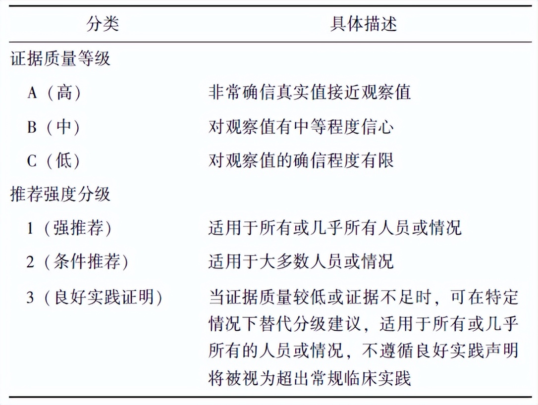表1 GRADE证据质量等级及推荐强度分级表