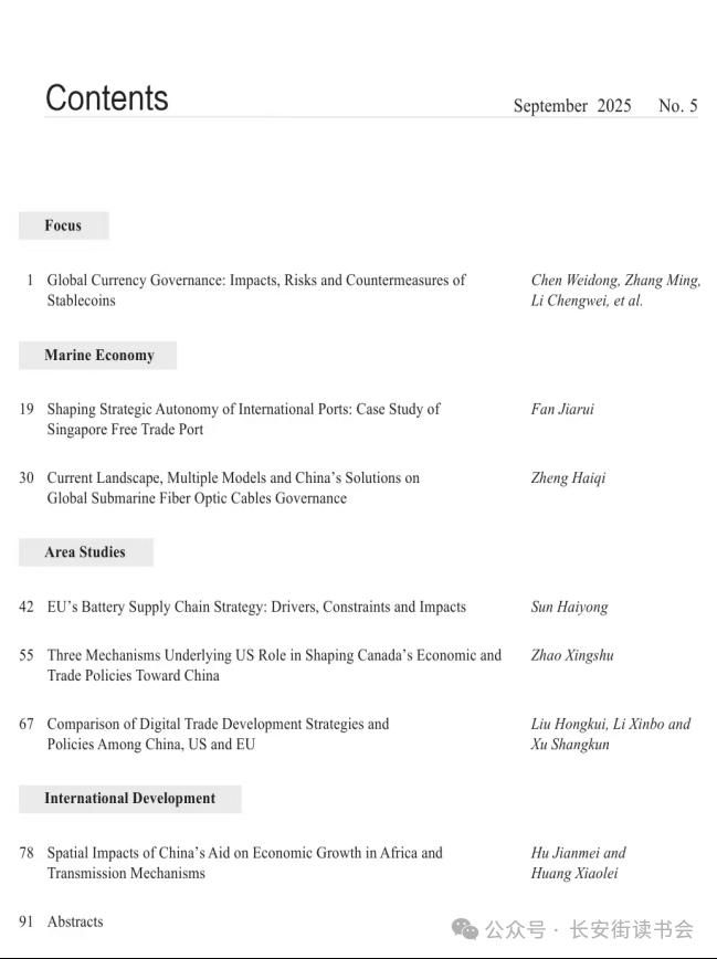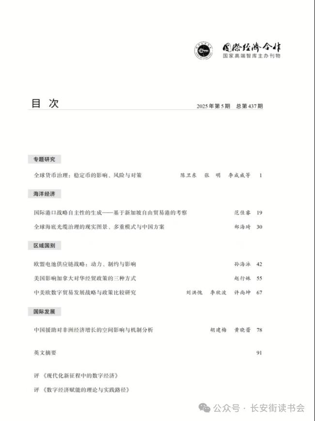 陈卫东、张明、李成威等在《国际经济合作》2025年第5期撰文《全球货币治理:稳定币的影响、风险与对策》指出,随着技术创新、加密资产及去中心化金融的发展,稳定币成为全球发展最快的数字货币类型,引发对金融体系数字化与货币未来发展的高度关注。稳定币体现全球货币变革的新趋势,但稳定币不是真正意义上的货币;其市场结构高度集中,但运行并非完全去中心化。稳定币将在一定程度上改变全球支付清算格局,在部分新兴市场国家形成新的货币替代现象,引发银行体系去中介化,加大资本流动管理难度,导致新兴市场国家面临加密化、美元化、美元武器化等诸多挑战。短期内,稳定币对美元的国际使用能起到一定支撑作用;长期看,稳定币难以从根本上缓解美元内生问题与美国经济发展存在的矛盾,并不能改变美元国际地位下降的大趋势。稳定币的使用价值与功能空间仍有待实践检验,中国对于稳定币及其未来发展要保持清醒认知,一方面应主动融入全球稳定币发展浪潮,加大监管力度;另一方面,采取“两条腿走路”的策略,同步推进数字人民币与离岸人民币稳定币的发展。同时,稳定币背后的底层逻辑是数字货币竞争,本质上是以财政为基础的现代金融制度的竞争,中国参与全球数字货币竞争的核心在于夯实金融强国的财政基础。