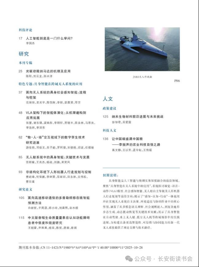 李国杰在《科技导报》2025年第20期撰文《人工智能到底是一门什么学问?》指出,人工智能作为一门发展近80年的学问,其发展过程中边界持续扩大、研究方向不断丰富,学界对其学科属性、研究核心等问题仍存争议。对人工智能的学科属性进行了系统分析,剖析了人工智能的学科定位,分析了人工智能可以像人一样思考、像人一样行动、理性地思考和理性地行动这4个核心目标,指出了人工智能是一种方法而不仅是模拟人类,是求解复杂问题的新范式,人工智能已超越传统计算机科学分支的范畴。强调了人工智能是科学技术的“元级探索方法”,目前仍处于“前范式科学”阶段。