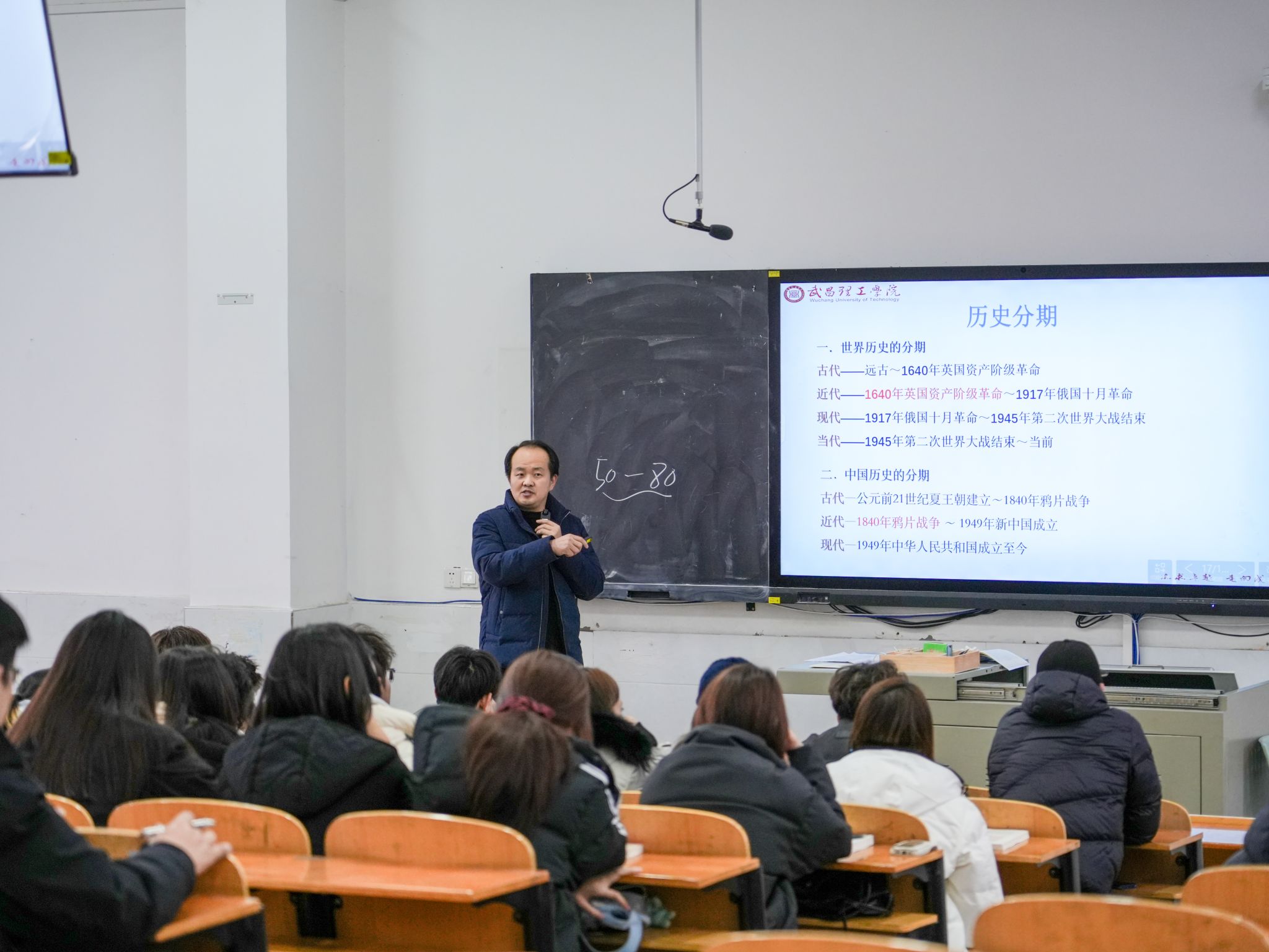 2026年3月2日是武昌理工学院新学期开学第一天,学校党委书记高建勋走进实教楼312教室,随堂听取马克思主义学院侯亮荣老师为表演2501-03班讲授的“中国近现代史纲要”第一课,深入了解课堂教学实际情况,督查新学期教学开局工作。校长助理、马克思主义学院院长彭贤则,学工处副处长温中华,马克思主义学院副院长曾晓辉陪同听课。