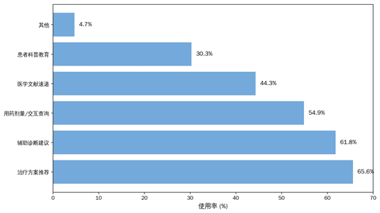 “AI不仅仅是查资料的工具,它正在成为我们临床思考的一部分。”一位主治医师表示。数据印证了这一观点:65.6%的医生使用DrSeek医问答进行治疗方案推荐,61.8%用于辅助诊断建议,两者合计覆盖超80%的使用场景。