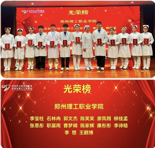 喜报!郑州理工职业学院14名学子荣获郑州市第七人民医院“优秀实习护士”称号