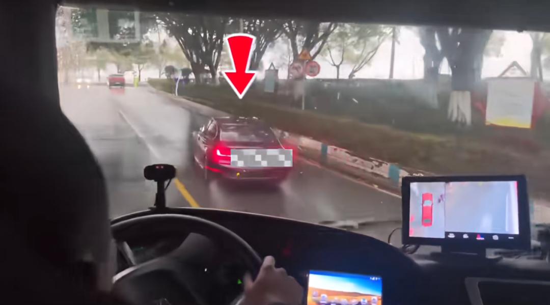 私家车低速行驶阻挡消防车通行。图源:广东消防