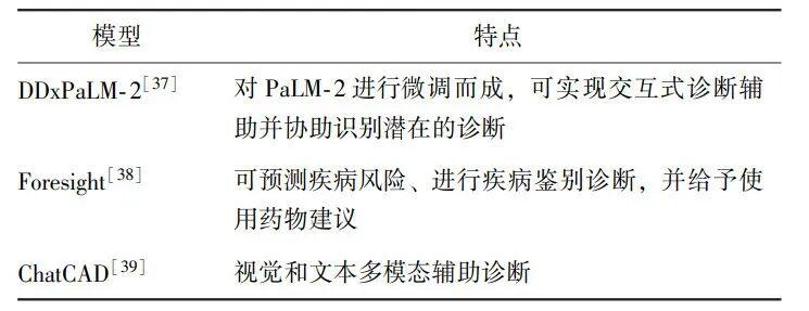 临床报告是记录患者放射学报告、出院总结或门诊病历的标准化文档,撰写临床报告是医护人员日常工作的重要组成部分。但人工撰写此类报告存在时间成本高、人为错误风险大、格式标准化欠缺等困境。LLMs可自动生成格式规范的临床报告,并通过知识库校验确保医学术语准确和内容完整,不仅提高了工作效率并可减少错误的发生[41]。在生成临床报告时,可将LLMs与视觉语言模型相结合。视觉语言模型可对医学影像进行分析并生成注释,与文本提示一起作为LLMs的输入,进而提高了报告内容的准确性和科学性。