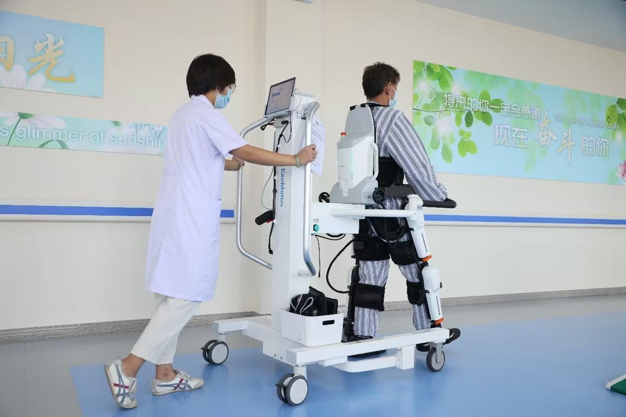 这个系统非常有利于偏瘫的病人,因为他有一部分站立的功能,也有一部分行走的能力,只是这些能力比较弱,而穿上这个之后就能够辅助他完成一些日常的动作。