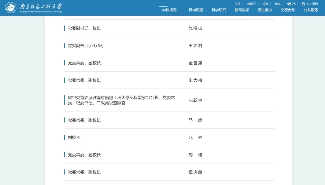 据南京信息工程大学官网“学校领导”一栏显示,章炎麟已担任南京信息工程大学党委常委、副校长。