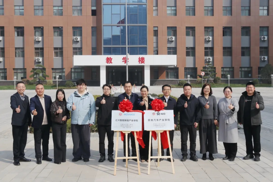 为深入贯彻产教融合、协同育人理念,精准对接智能制造与新能源汽车产业发展需求,助力区域产业转型升级,3月12日上午,河南女子职业学院汇川智能制造及蔚来汽车产业学院揭牌仪式在东校举行。仪式由智能制造学院院长方志广主持,副校长周旷怡、校长助理王俊国出席,苏州汇川技术有限公司、上海蔚来汽车有限公司相关嘉宾及学校师生代表共同见证,携手开启校企协同育人新篇章。