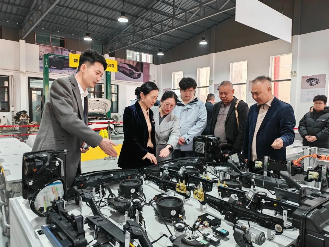 在热烈的掌声中,校企双方领导共同为汇川智能制造及蔚来汽车产业学院揭牌。仪式结束后,与会领导及嘉宾实地参观了智能产线综合实训室、蔚来汽车产教融合实训室,并围绕深化校企合作、优化人才培养方案、提升实训教学质量等内容开展深入交流。