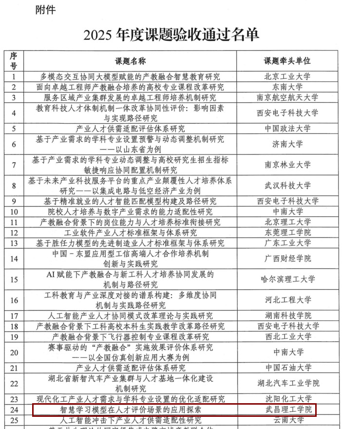 近日,由武昌理工学院牵头承担的工业和信息化部人才交流中心重点实验室课题——“智慧学习模型在人才评价场景的应用探索”,顺利通过验收,正式结题。该课题于2025年7月获批立项,是湖北省同类高校中唯一入选单位。