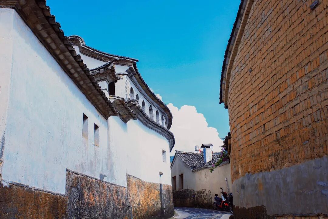 和顺民居均为粉墙黛瓦,木构建筑,石板铺地。