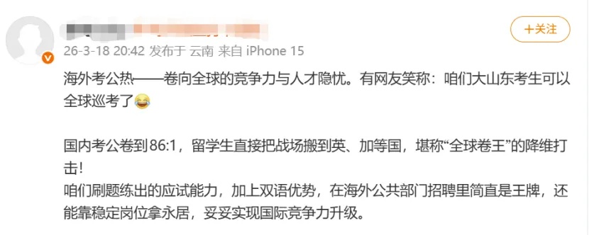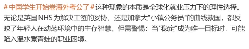 近日,#中国学生开始卷海外考公了#登上微博热搜,并引发关注: