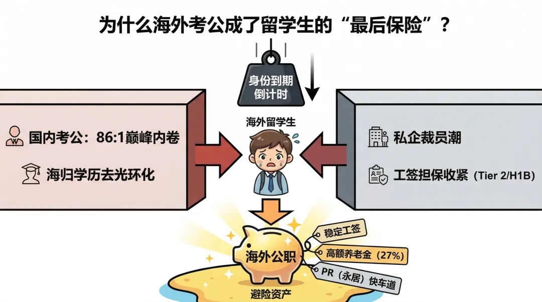 当国内考公人数突破370万、报录比冲向98:1的历史巅峰时,很多留学生突然发现:既然国内卷不动,为什么不直接报考海外公务员试试“降维打击”呢?