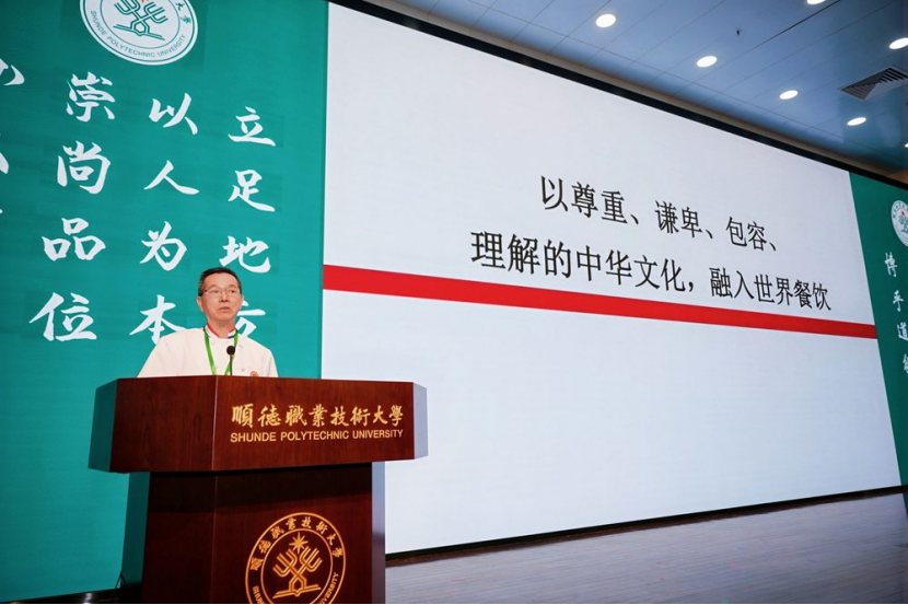 卢清华致辞表示,顺德职业技术大学烹饪学院是全国唯一挂牌的“中国烹饪学院”、国务院侨办五个“中餐繁荣基地”之一,依托全国数智餐饮行业产教融合共同体、粤菜预制菜产业学院等平台,联动行业龙头企业共建厨电产品应用研究中心,形成产教深度融合的育人体系。近年来,学校积极参与“粤菜师傅”工程,服务乡村振兴,落实“职教出海”,取得一系列标志性成果。希望通过本次会议推动教学标准与行业需求精准对接、院校资源与龙头企业深度融合、菜品研发与烹饪技术创新协同,实现以会促教、以会促融、以会促创,在政府指导、学校培养、企业实践、协会认证的协同机制下,共同探索中餐国际化背景下高端技能人才培养的新模式、新路径。学校将以此次会议为契机,深化政行校企协同,以顺职匠心培育世界厨才,以顺德味道讲好中国故事。