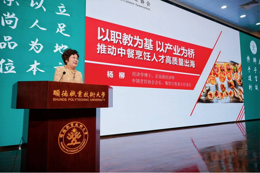 会上,杨柳作“以职教为基、以产业为桥,推动中餐烹饪人才高质量出海”主旨报告,系统阐述中餐出海的时代背景、现实挑战与实践路径。她表示,当前中餐门店遍布全球180多个国家和地区,正由“走出去”向“走进去、走上去”的高质量发展阶段迈进。当前中餐出海面临五大核心挑战,一是复合型人才短缺,传统烹饪人才在海外食材适配、跨文化沟通等方面能力不足;二是标准化体系滞后,中餐工艺复杂、口味多样,与海外食品安全及运营标准对接不畅;三是品牌建设薄弱,行业呈现“小、弱、散”格局,缺乏具有国际影响力的领军品牌;四是跨境供应链体系不完善,冷链物流与中央厨房布局制约规模化发展;五是文化传播深度不足,中餐文化附加值未能充分释放。围绕上述问题,杨柳介绍了中国烹饪协会在搭建产教融合平台、拓展国际交流渠道、精准对接产业需求等方面的务实举措。她强调,未来需以培养兼具“中国根”与“世界眼”的国际化烹饪人才为目标,构建标准引领、品牌聚力、生态共建、文化塑魂的支撑体系,推动中餐烹饪人才高质量出海。中国烹饪协会将继续发挥桥梁纽带作用,以职业教育强根基、以产业协同促出海、以文化传播树形象,携手打造中餐烹饪人才培养新高地,让更多中华美食飘香世界,让中国工匠闪耀国际舞台。