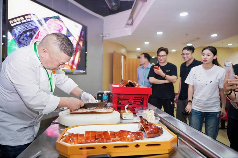 在厨艺交流展示分会场,不同菜系的海内外名厨大师同台献技。灶台前,刀光飞舞,火舌跳跃,锅铲翻飞间,一道道色香味形俱佳的珍馐美馔渐次呈现。锅碗瓢盆的碰撞声、名厨们的切磋声、观摩者的赞叹声交织在一起,共同展现对精湛烹饪技艺的追求和对中华饮食文化的表达。
