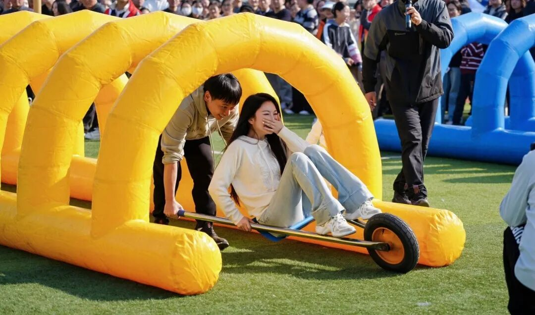 在运动场的热闹场景里