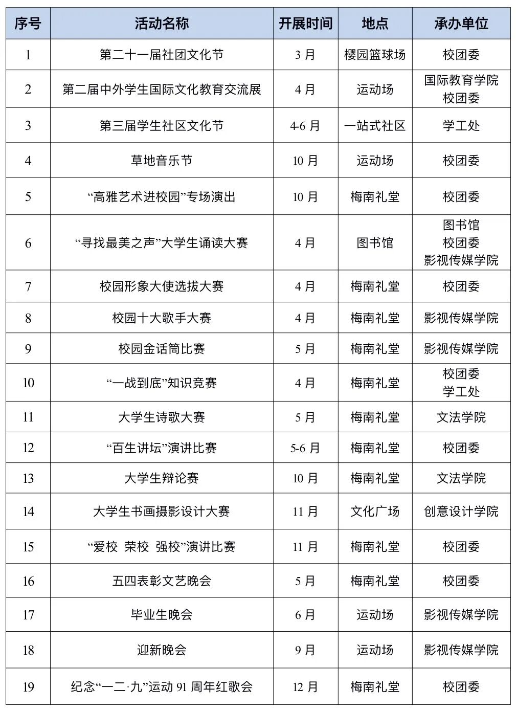19场文艺活动贯穿全年