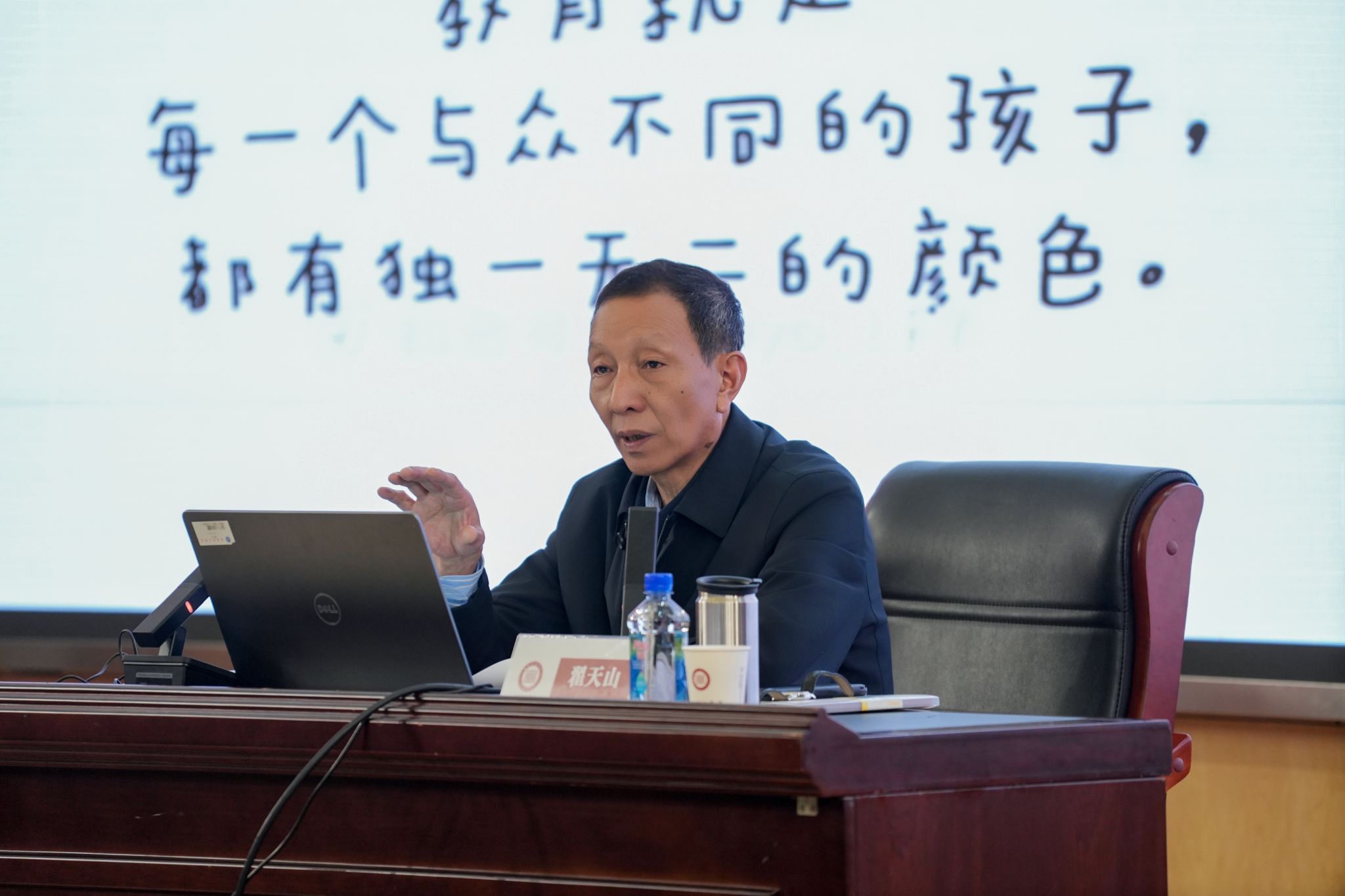 在谈到践行教育家精神的具体路径时,翟天山教授指出,要将教育家精神内化于心、外化于行,转化为求真务实、立德树人、建设教育强国的实际行动。他强调,立德树人是教育的根本任务,学校管理和教育教学工作者要担当起落实这一根本任务的主体责任。他特别提出,教育教学骨干不仅要具备思想政治的引领力、教学科研的创新示范力,还要发挥统筹协调的组织凝聚力,在“带头带领”中凝聚求真、从善、向美的教育力量。