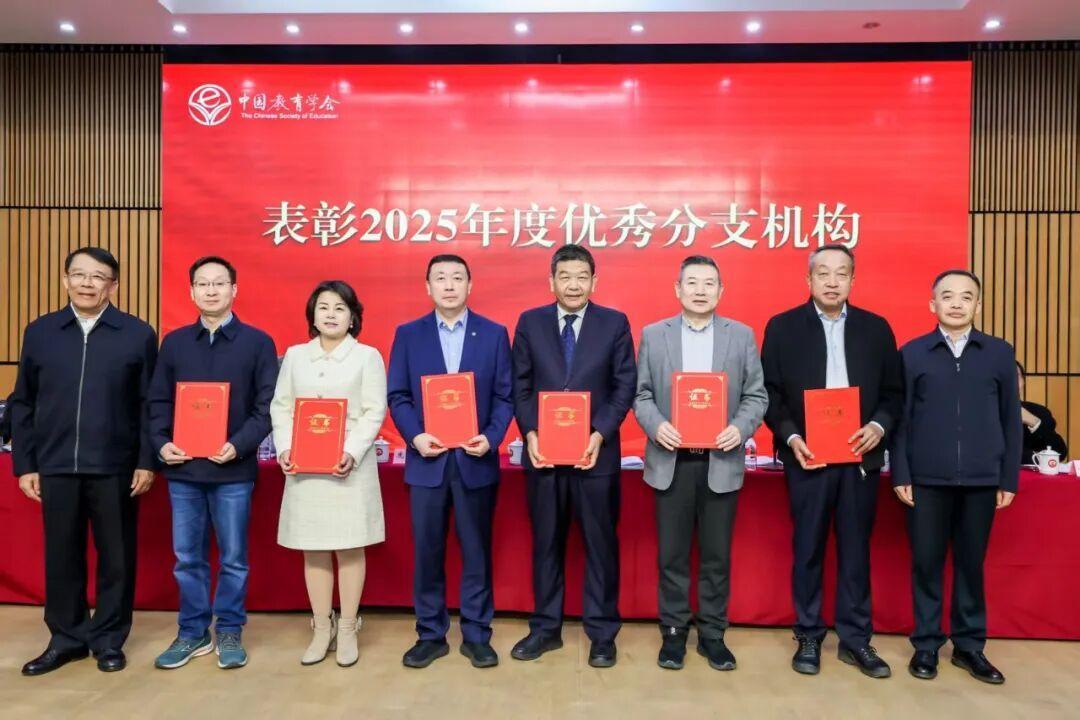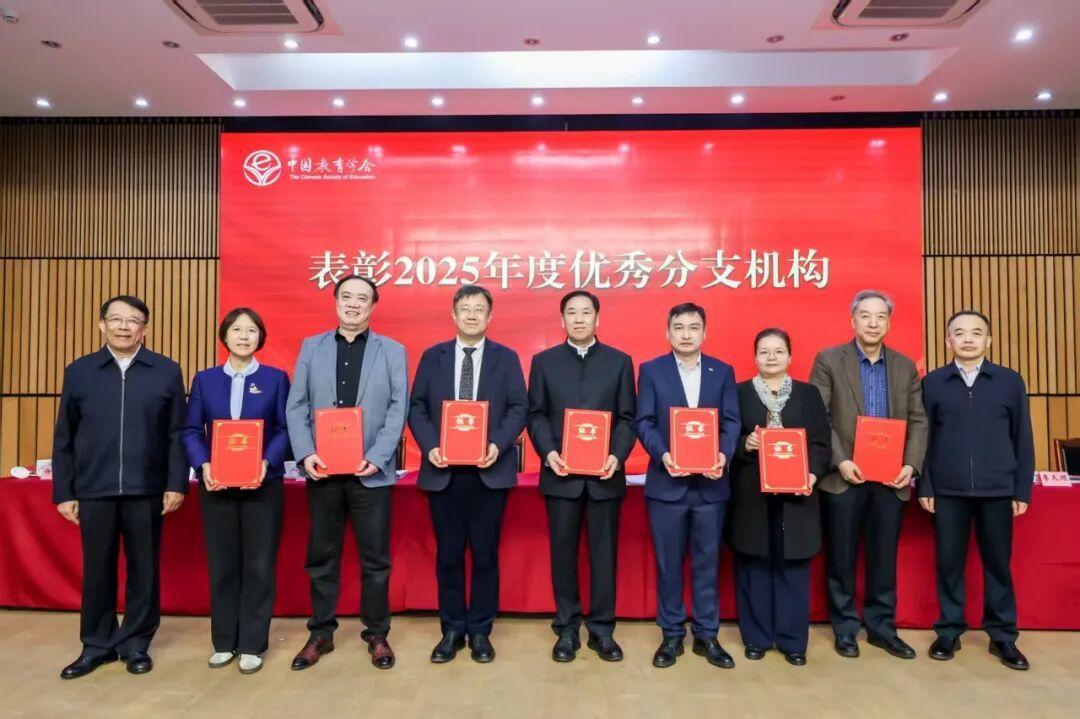 会议表彰了中国教育学会2025年度优秀分支机构。吕玉刚宣读了《中国教育学会关于对有关分支机构予以表彰的决定》,25个分支机构分别荣获组织建设奖、品牌建设奖、学术建设奖、规范建设奖。中国教育学会会长朱之文、顾问郑富芝共同为学会2025年度优秀分支机构颁发证书。
