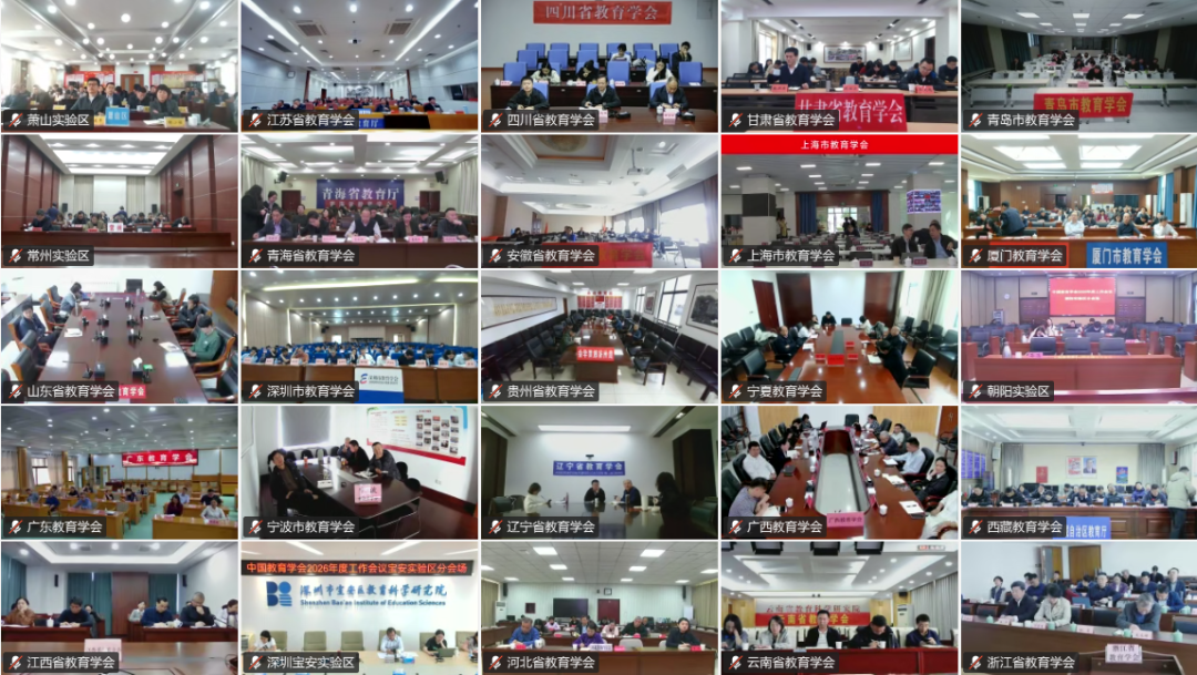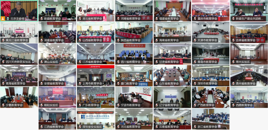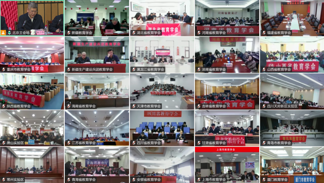 中国教育学会常务理事、理事,各分支机构理事长、秘书长,各省(自治区、直辖市)和新疆生产建设兵团教育学会、各计划单列市教育学会负责人在北京主会场和各地分会场参会。学会监事,学术委员会副主任委员、委员,教改实验区负责同志等列席会议。会议以线下线上相结合形式召开,全国41个分会场共1000余名代表集中参会。