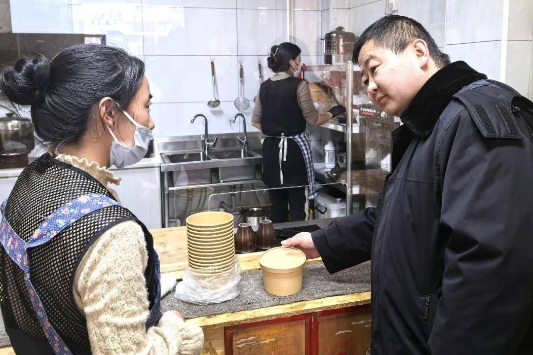 三月的青海湖正破冰苏醒,半湖蓝冰半湖粼粼,远处雪山如黛。春寒未消,青海省刚察县检察院的检察官们裹紧外套,来到县城主干道旁的“风味藏餐吧”进行回访。当看到老板卓玛将印有“外卖安心封口贴”字样的防拆封签,稳稳贴在装着青稞饼和牦牛肉汤的餐盒上时,检察官山成斌笑着点头:“卓玛,外卖封签用得越来越规范了。”卓玛笑着回应:“多亏你们的监督,现在每位顾客下的单我们都会贴好封签贴,这个小小的封签贴成了连接我们餐馆和顾客的‘安心贴’!”