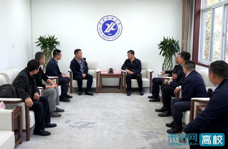 石敏超对学校的热情接待表示感谢,对学校在石油石化行业人才培养和科学研究取得的成绩表示赞赏,并详细介绍了合肥智能无人装备研究院发展定位、核心业务布局与重点合作方向,明确表达深化全方位、多层次务实合作的意愿,期待在无人技术研发、智能装备应用、高层次人才联合培养等领域与学校开展更深度战略合作。