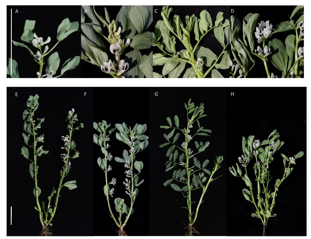 蚕豆作为重要的高固氮作物和优质蛋白来源,其栽培品种多为无限生长型,其茎端无限生长特性与成熟期不一致制约着机械化生产和收获指数的提高。生长习性直接决定植株结构,影响着开花结荚特性、荚分布、抗倒伏性和成熟一致性,是蚕豆株型建成的核心因素。但目前选育出的有限生长型品种植株矮小、产量潜力有限。针对该问题,青海大学蚕豆育种创新团队开展了系统研究,对蚕豆宜机半矮秆理想株型相关性状进行鉴定分析,观测不同生长习性种质茎端分生组织表型差异,成功鉴定2个调控亚有限生长习性的关键基因。