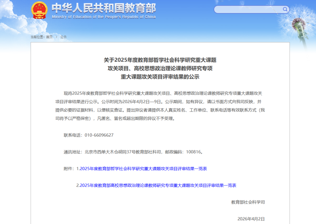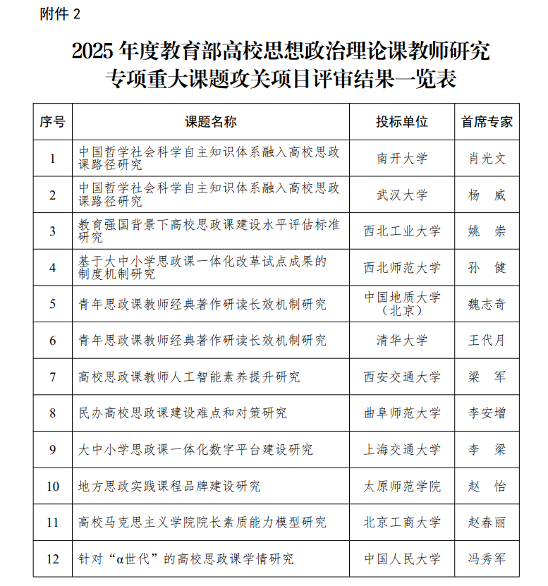 、高校思想政治理论课教师研究专项重大课题攻关项目评审结果。