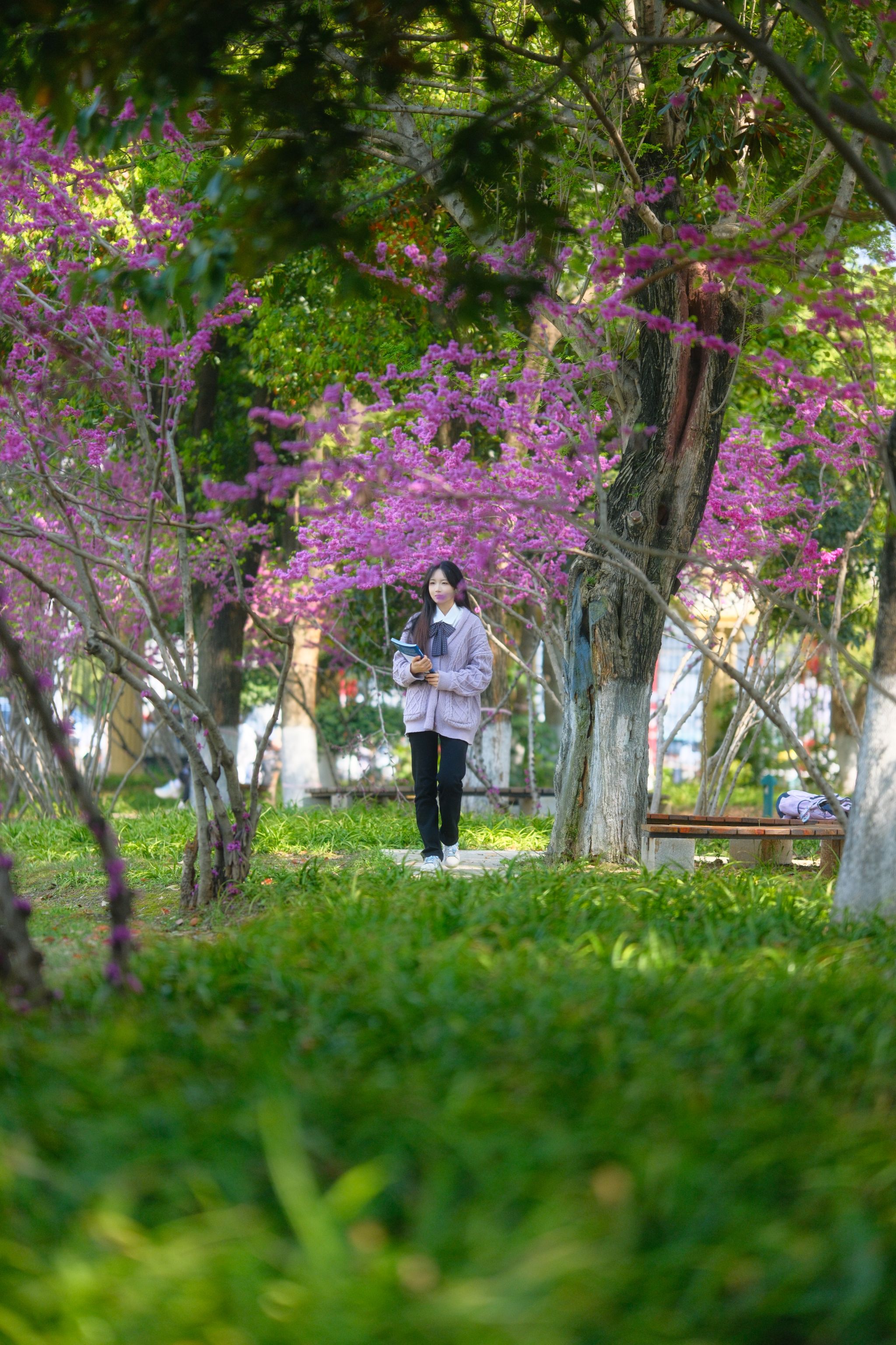 “紫荆花不仅与我校最美湖景校园环境、成功素质教育人才培养理念高度契合,更与‘追求卓越、走向成功’的校训精神同频共振,是彰显学校精神的绝佳载体。”武昌理工学院副校长林娟介绍,目前进校主干道两侧及行政楼后草坪已栽种紫荆花,每到春日,粉紫繁花缀满枝头,成为校园最动人的景致。尤为难得的是,这些紫荆花多生长在高大香樟树下,即便光照有限,仍能如期盛放、花姿繁茂,其顽强坚韧、奋勇奋进的特质,更完美呼应了武昌理工学子扎根求学、向阳生长、突破困境的青春风貌。