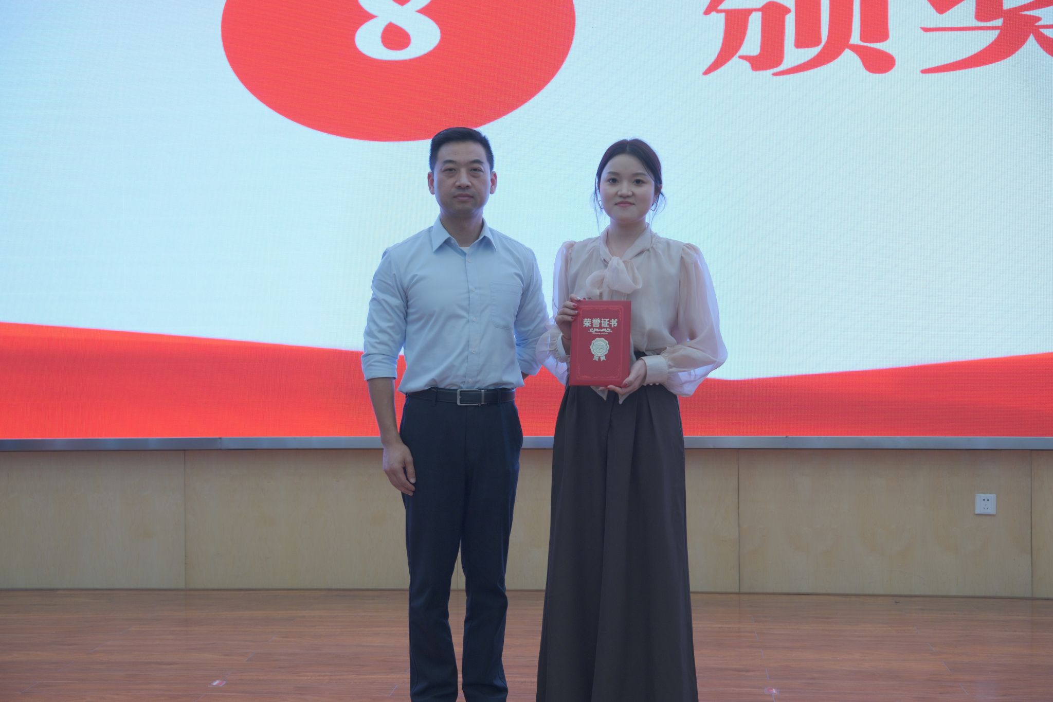 经过激烈角逐,文法学院王璐璐荣获一等奖,影视传媒学院单鹏飞获得二等奖,健康与护理学院任宇倩、人工智能学院芦荣获得三等奖。创意设计学院王书文、商学院张佳玥、人工智能学院袁小梅、空间信息工程学院陈雅琪四位老师获得优秀奖。各位专家评委与校领导为获奖老师现场颁奖,并合影留念。