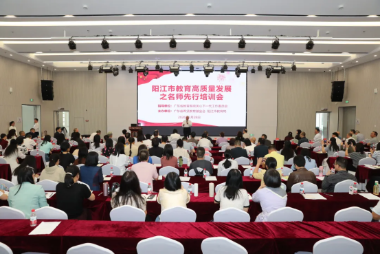 2026年3月28日,由广东省希贤教育基金会与阳江市教育局联合主办、广东省教育系统关心下一代工作委员会指导的“阳江市教育高质量发展之名师先行培训会”在阳江市教师发展中心一楼报告厅举行。阳江市委、市政府领导、教育系统代表、校长、名师工作室主持人、骨干教师代表,来自北京大学、清华大大学、华南师范大学、暨南大学、广东外语外贸大学、中国教育发展战略学会等高校及行业专家,以及广东省希贤教育基金会专家顾问、爱心捐赠企业代表等200多人齐聚一堂。