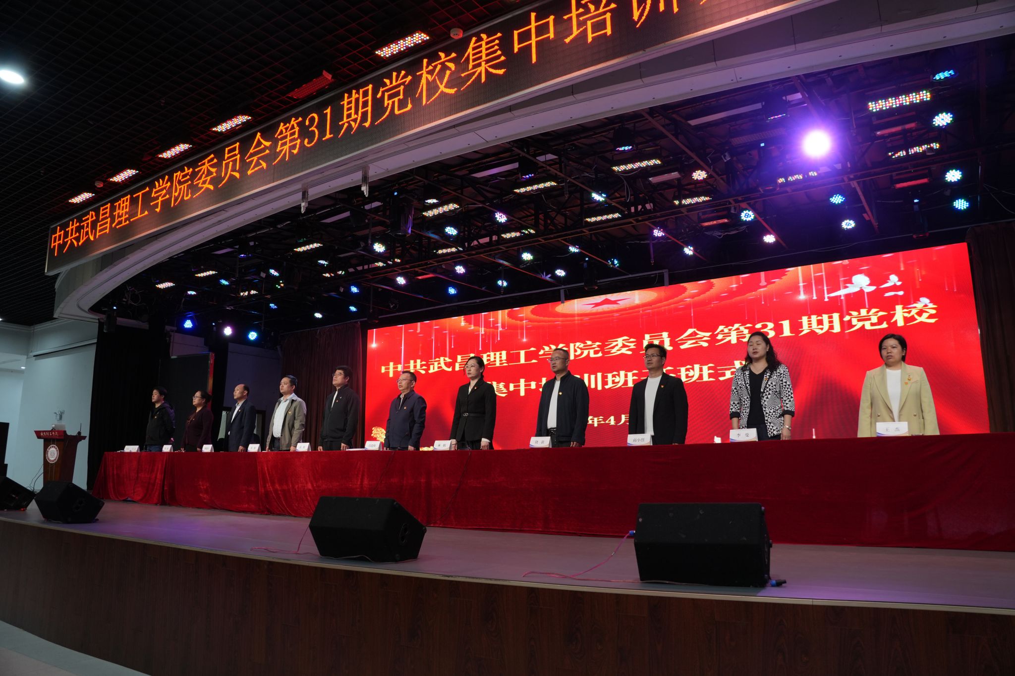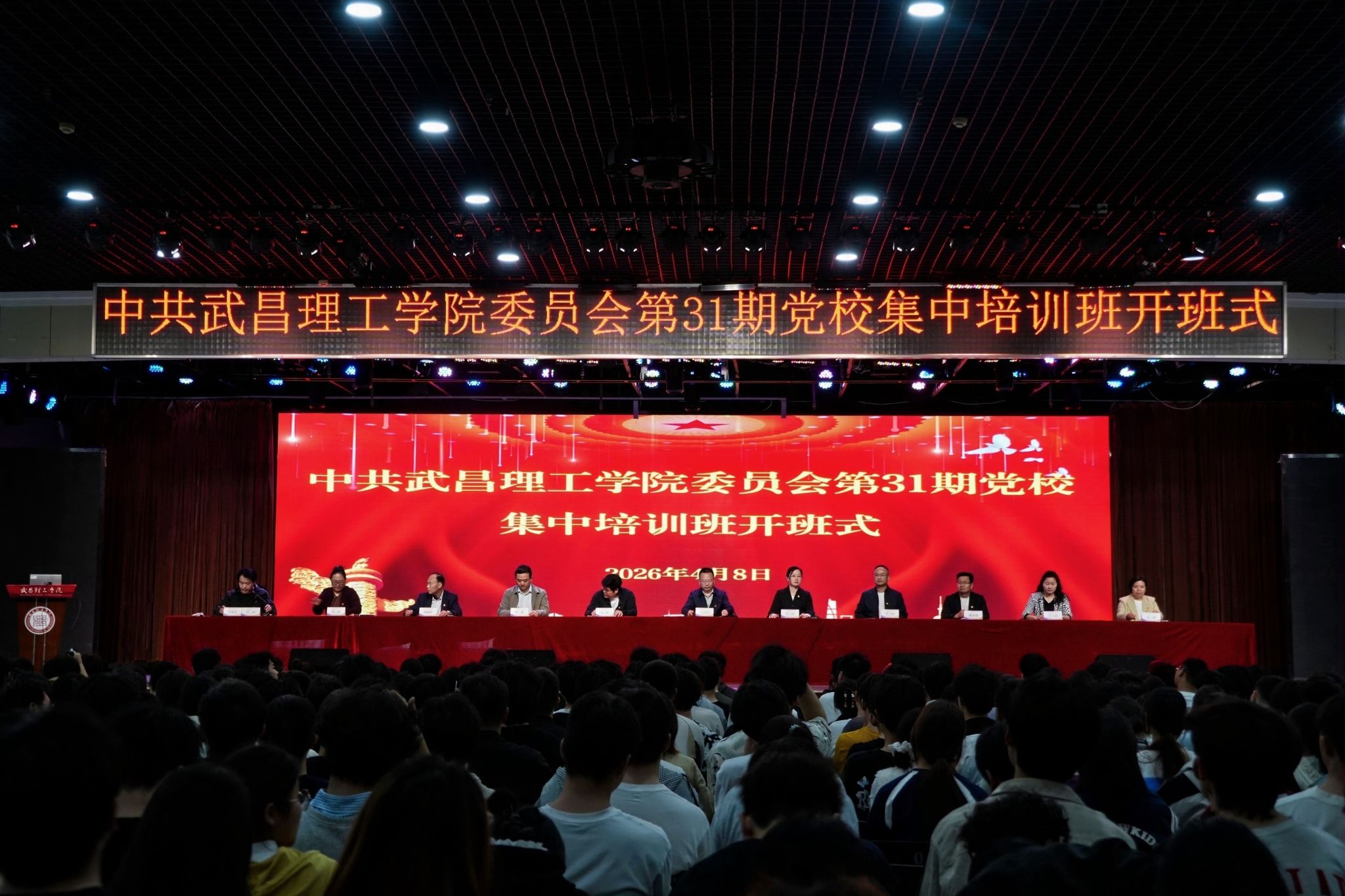 4月8日晚,中共武昌理工学院委员会党校第31期入党积极分子、发展对象培训班开班式在大学生活动中心三楼举行。校党委书记高建勋出席并作动员讲话,校党委副书记、纪委书记林娟讲解培训纪律要求,党委组织部常务副部长汪山主持开班式。各学院党总支书记、党务秘书、培训班班主任及第31期入党积极分子、发展对象、预备党员900余人参加活动。开班式在庄严的国歌声中拉开帷幕。