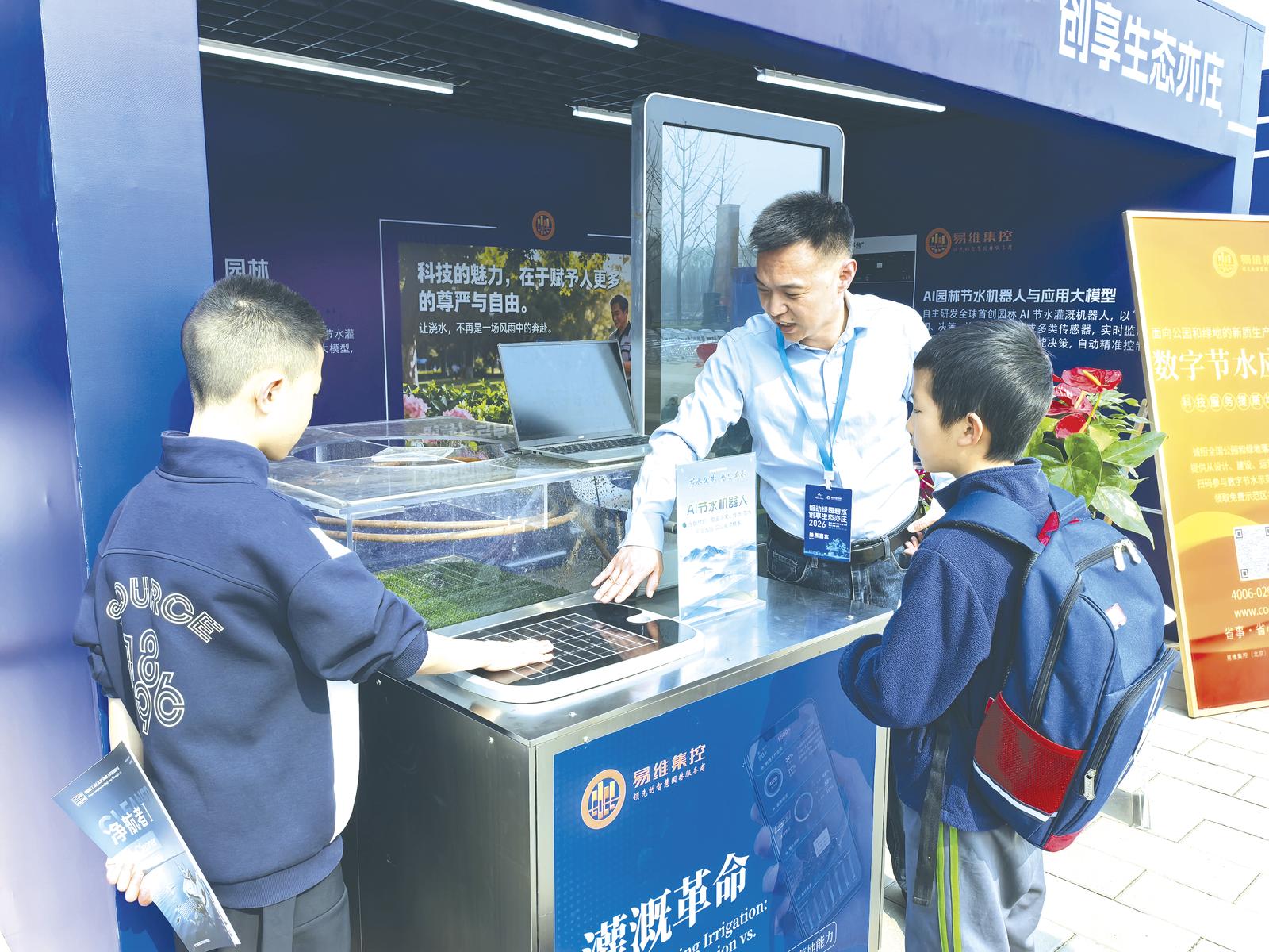 其中,一款人工智能(AI)节水机器人吸引众多参观者驻足。