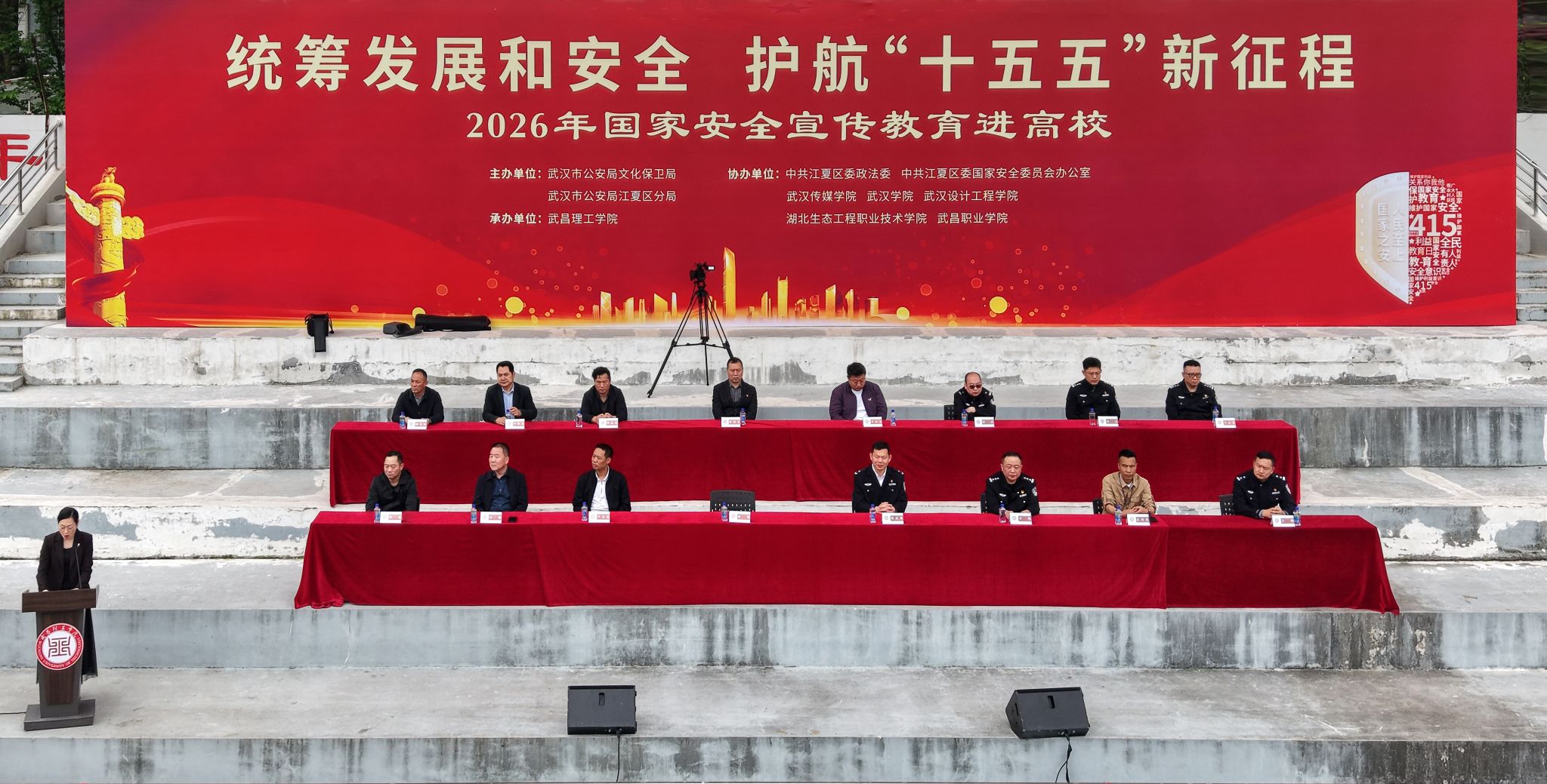 为深入推进高校国家安全宣传教育工作,切实提升青年学子国家安全意识和防范能力,4月13日,“统筹发展和安全 护航‘十五五’新征程”2026年国家安全宣传教育进高校活动在武昌理工学院运动场盛大举行。本次活动由武汉市公安局政治安全保卫支队、武汉市公安局江夏区分局联合主办,武昌理工学院承办,中共江夏区委国家安全委员会办公室、江夏区委政法委及武汉传媒学院、武汉学院、武汉设计工程学院、湖北生态工程职业技术学院、武昌职业学院等多所高校协助举办,凝聚多方力量筑牢高校国家安全防线。