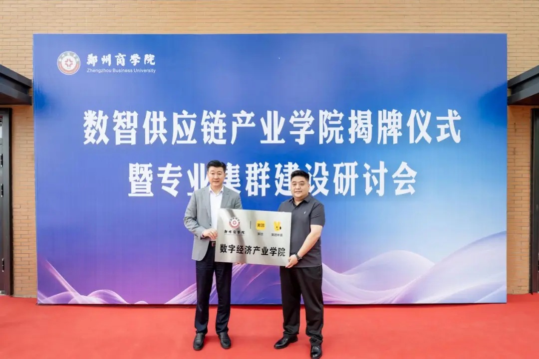 4月16日,郑州商学院数智供应链产业学院揭牌仪式暨专业集群建设研讨会成功举行。会上,郑州商学院与美团签订校企战略合作框架协议并共同授牌建设美团数字经济产业学院。