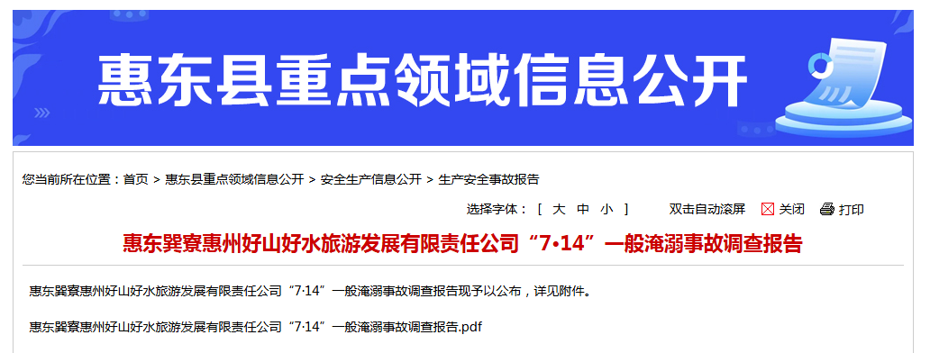 2025年7月14日,广东惠州惠东县巽寮度假区海公园水上乐园发生一起溺水事故,一名4岁男童不幸身亡。近日,惠东县人民政府官网公开了该起事故调查报告。