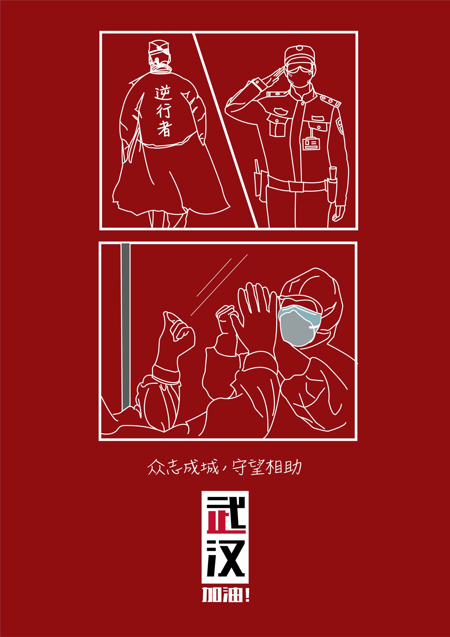 创意说明:采用暖色希望给武汉带来温暖,祝愿武汉同胞早日摆脱疫情,武汉加油!(作者:韩京耀)