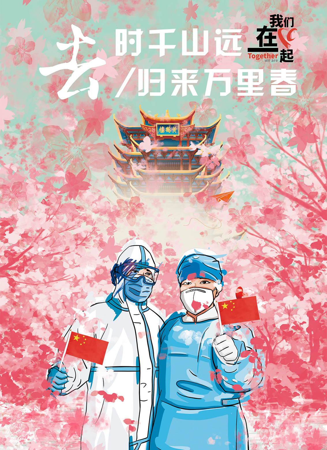 创意说明:春暖花开之际便是你归来之时,与你相拥,看着疫情后的春天有多美。(作者:陈籽彤 )